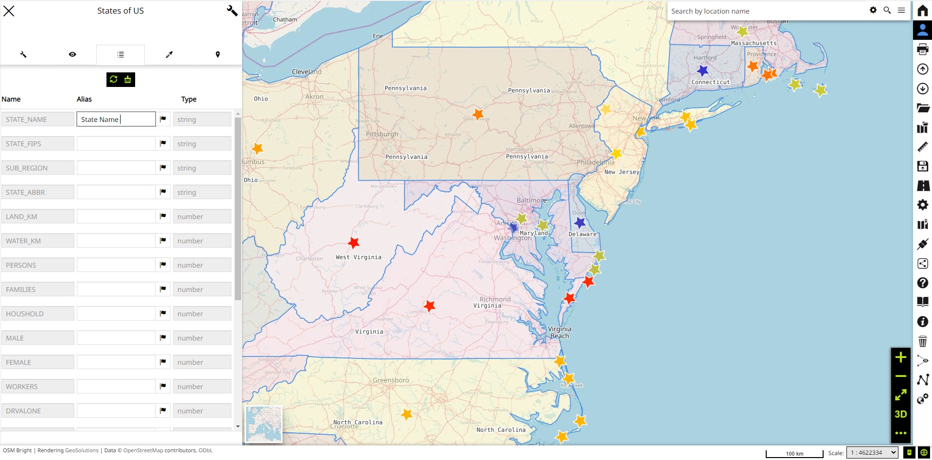 Finally, MapStore offers the ability to configure aliases for feature attribute names for all tools that use them for their purposes and functionalities within the application.