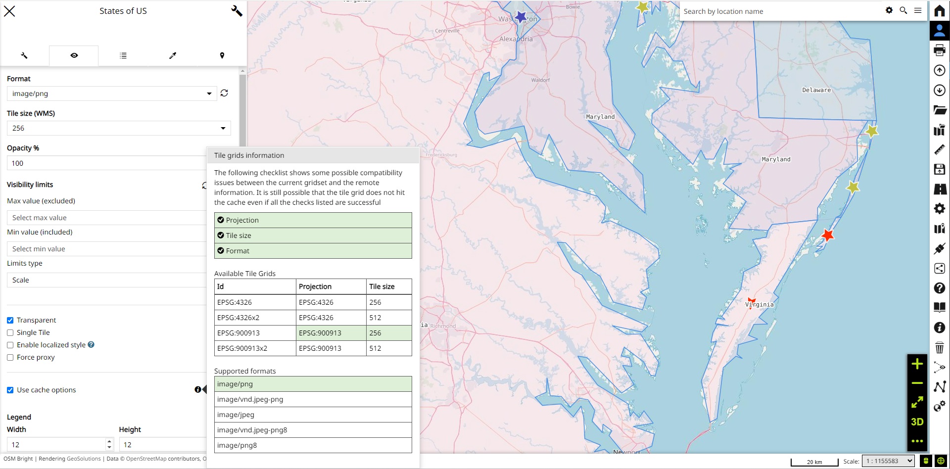 MapStore now allows a more fine and effective tuning of caching options and strategies for WMS and WMTS layers in TOC where GeoWebCache is used for caching purposes on the server side. The support is now available also for scenarios where custom map scales are used on the MapStore side.